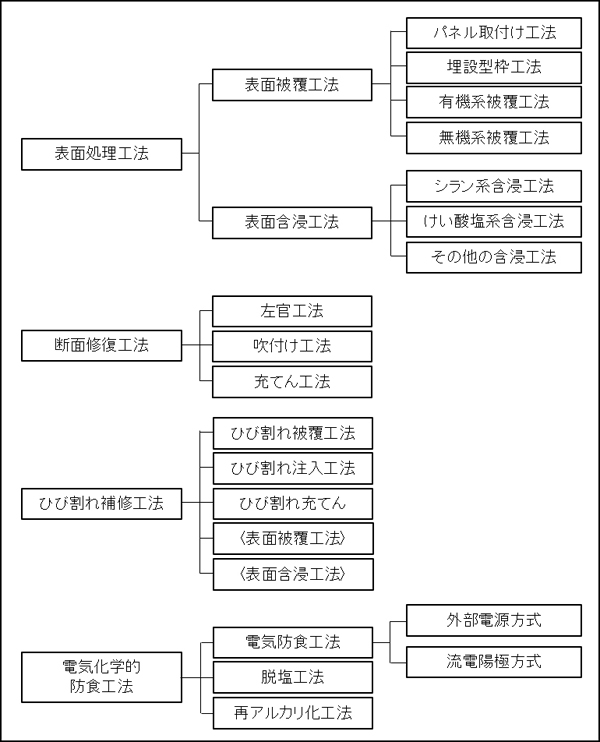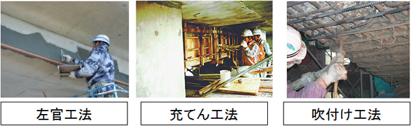 □ コンクリート構造物に適用されている補修工法の一例を図2に示します。