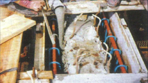 充てん工法は、型枠を設置し、流動性の高いモルタルやコンクリートを型枠の中に流し込む方法です。