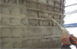 吹付け工法は、型枠を設置せず、モルタルやコンクリートを圧縮空気や遠心力等によって施工する工法であり、主に上向きや横向きの断面修復に用いられ、空気圧縮による工法には乾式工法と湿式工法があります。
