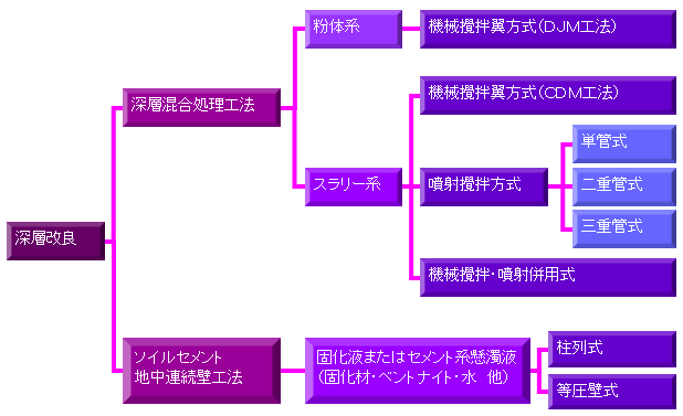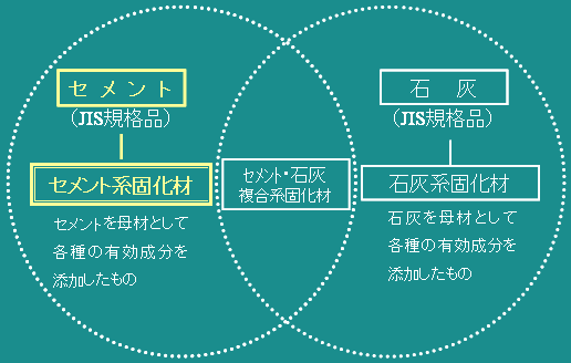 従来の石灰やセメント等では固化させにくい土質や現場の条件に対応するために開発され、下図に示すように位置づけられます