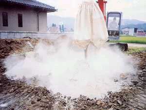 セメント系固化材の貯蔵は、通常のセメントと同様に水分や湿気にご注意ください。