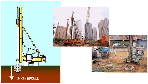 セメント系固化材と対象土の混合は、改良の効果に大きな影響を与えるので留意が必要です。