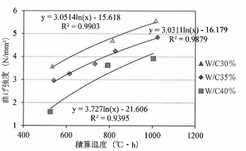 図10-2曲げ強度と積算温度の関係例 |