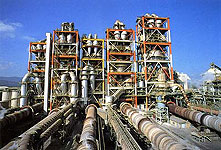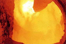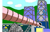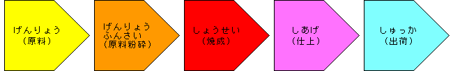 粉になった原料に熱(ねつ)を加(くわ)えると、化学反応(かがくはんのう)をおこし、水をまぜるとかたまる性質(せいしつ)を持(も)つ素材(そざい)に変化(へんか)するんだ。 この変化したものを「クリンカ」とよぶんだよ。 この工程では、まず、くだかれた原料を予熱装置(よねつそうち)(プレヒーターともいうよ)というタワー(高さは70〜90mで25階建(かいだて)のマンションぐらい)のような装置(そうち)で加熱(かねつ)した後、「回転窯(かいてんがま)(ロータリーキルン、またはキルンともいうよ)」という、とっても太いパイプ(直径(ちょっけい) が4〜6m、長さが60〜100mの大きな 鉄(てつ)のトンネル)を横(よこ)にねかせたような装置に入れるんだけれど、なんと最高温度(さいこうおんど)は1,450度にもなるんだ。この高い温度で原料をやくと、性質が変化するんだよ。これを焼成と言うんだ。そして今度はいっきにこれをひやすと、これによって「クリンカ」ができるんだ。クリンカはセメントになる前の中間製品(ちゅうかんせいひん)だよ。 また、焼成工程では、とくにたくさんの熱エネルギーを使っているんだけれど、あたたまった熱エネルギーはセメント工場の中で有効(ゆうこう)に再利用(さいりよう)して、エネルギーをせつやくしているんだ。くわしく言うと、1,450度で焼成された原料をきゅうげきにひやす時につかった空気は高い温度になっているので、回転窯や、予熱装置や、原料の乾燥機(かんそうき)などにおくりこんで、空気の持っている熱エネルギーを有効に活用しているんだよ。