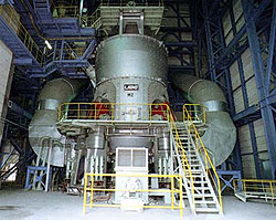 原料をてきせつな割合(わりあい)でまぜ合せて、乾燥(かんそう)・粉砕(ふんさい)・ふるい分けをするんだ。 この工程では、原料を乾燥させた後、「原料粉砕機(ふんさいき)(ローラーミルとも言うよ)」という大きな機械(きかい)を使い、ローラーで粉になるまですりつぶし、細かい粉にならないものはふるい分けて、もう一度粉になるまでローラーでつぶすんだ。