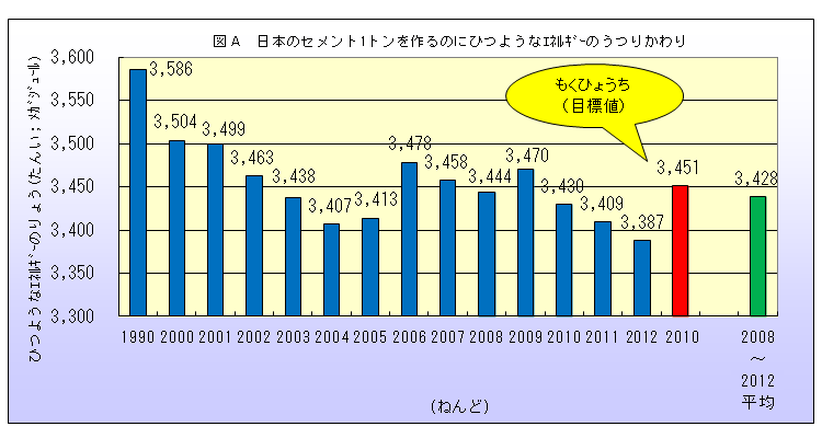 天然の原料の使用をへらし、かわりに火力発電所で石炭をもやした時に出てくる灰(石炭灰、フライアッシュともいう)や、下水処理場で出てくる下水汚泥や都市ゴミなどの廃棄物を、原料として使うことをふやす。 |