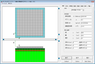 | コンクリート版の温度分布より、目地縁部の温度応力を計算する。 | |
